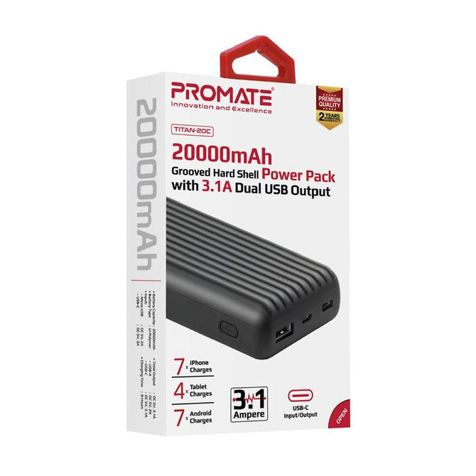 Notify me when PROMATE TITAN-20C. BLK LI-POLYMER POWER BANK BLACK - Default Title becomes available.