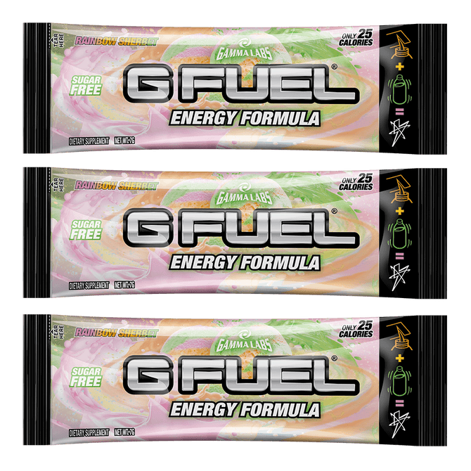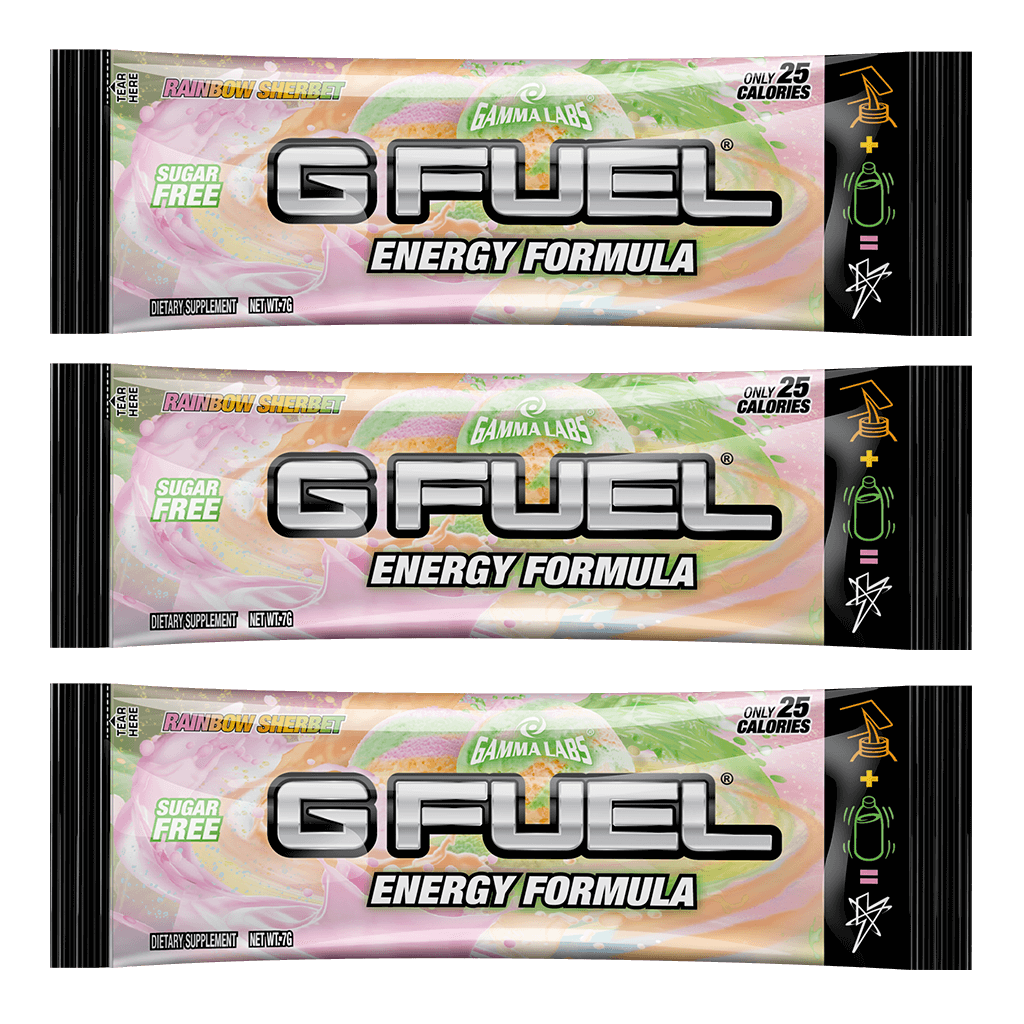 Who said “You can’t have dessert whenever you want!”??? Not us! Introducing… *insert suspense-building drum roll*… the newest addition to our G FUEL lineup – Rainbow Sherbet! Not only does this flavor look incredible on the outside (just look at that fancy new-packaging), but it tastes just like rainbow sherbet ice cream! A true home-run of a flavor!