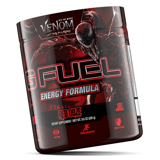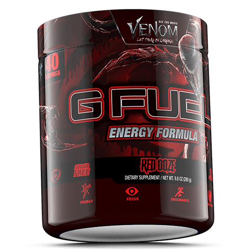 A red blur of tendrils wrap up your legs as it lifts you into the air. There, you see it! A chill runs up your spine. It’s the new G FUEL Carnage Red Ooze Tub! An epic teamup from G FUEL and Sony Pictures’Venom: Let There Be Carnagewith a chaotic, sour black cherry taste that will be sure to let your inner symbiote cause CARNAGE!