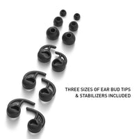 Play for hours in complete comfort with three sizes of interchangeable ear-tips and stabilizers for the best fit (small, medium and large for each).